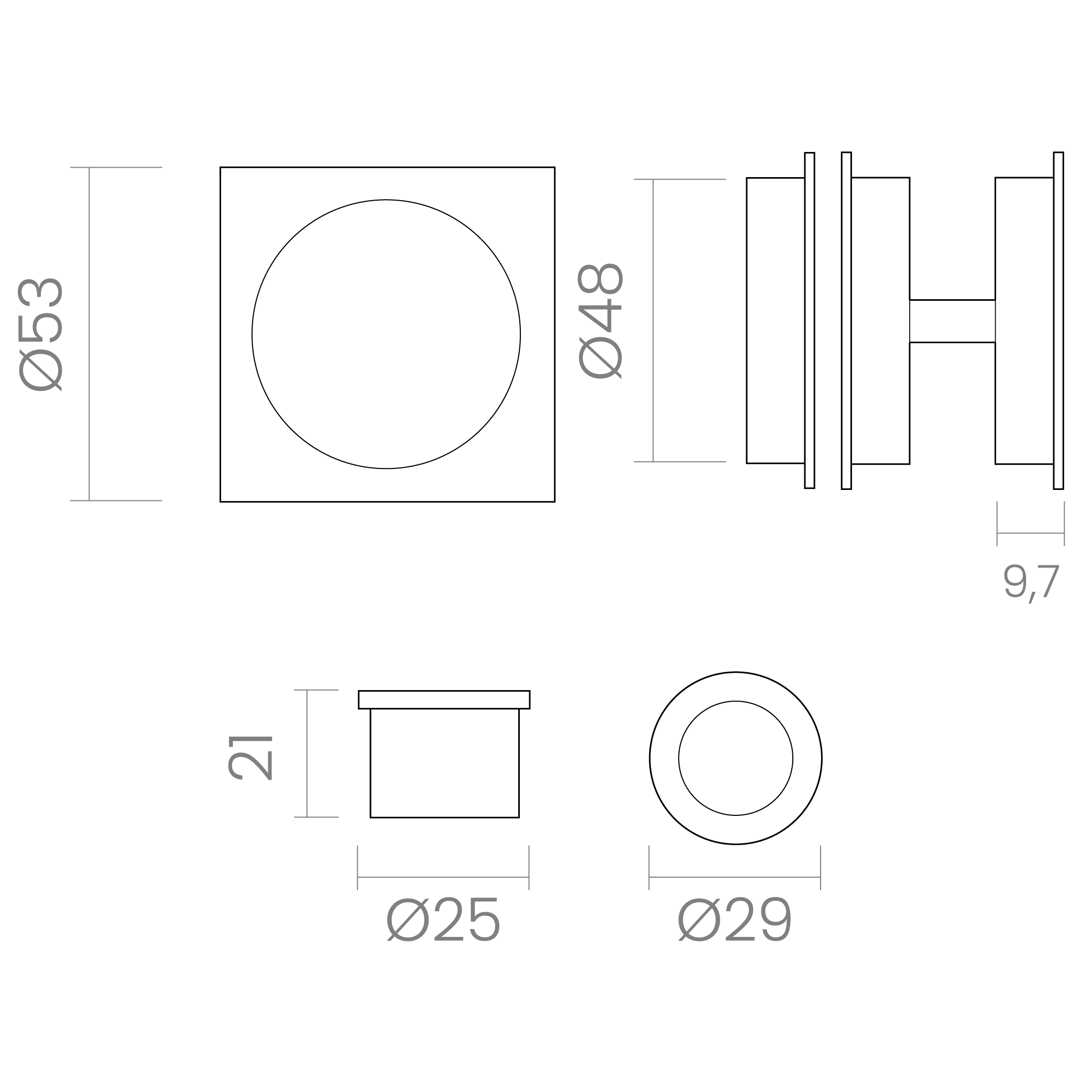 Tirador uñero cuadrado con cierre, ideal para puertas correderas.